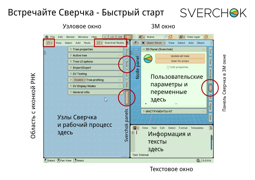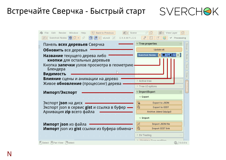 | Специализированные инструменты | Dendro (вумерное моделирование на OpenVDB) , IG-Mesh (продвинутая обработка mesh) , Groundhog (ландшафтная архитектура). | Megapolis — изначально создавался для Sverchok. Инструментарий для генерации городов, дорожных сетей и кварталов на основе параметрических правил. |