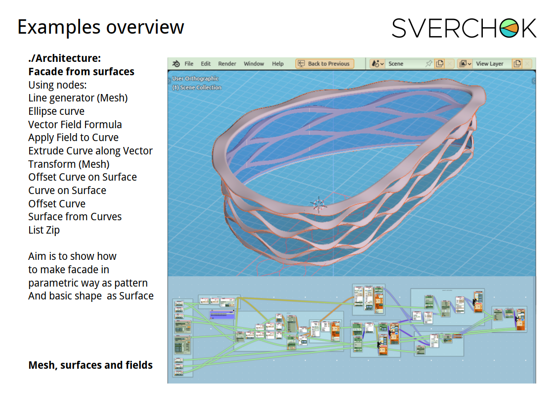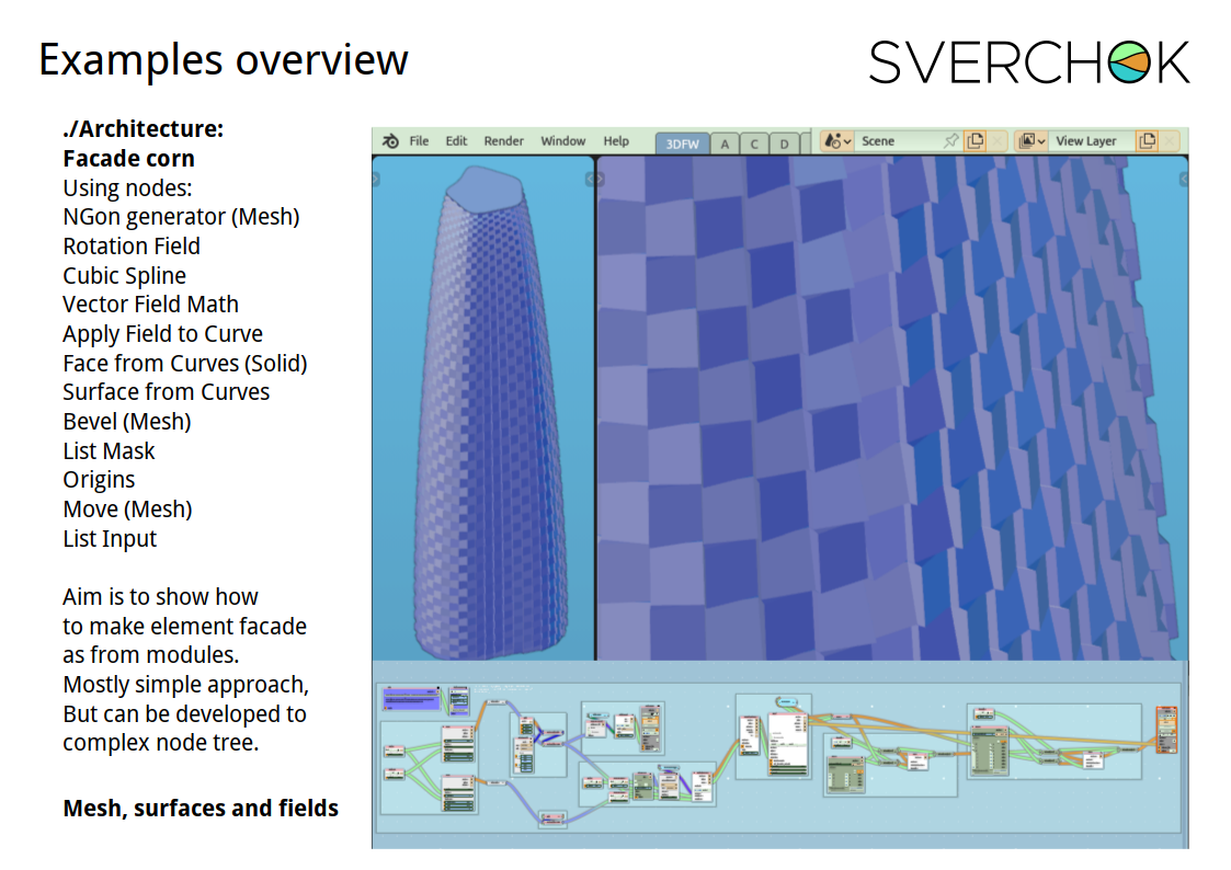 Sverchok — это не просто надстройка для работы с сетками (mesh), а полноценная параметрическая CAD-система, узлы которой генерируют и оперируют различными типами геометрических данных.