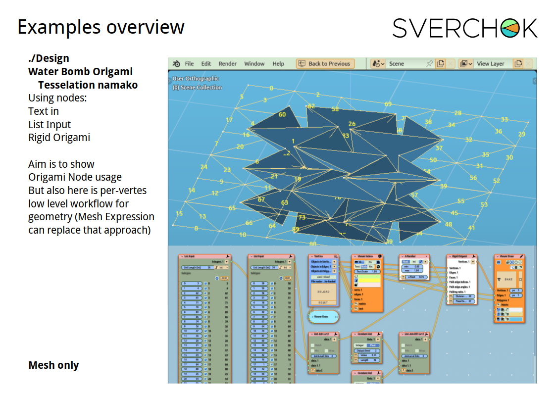 Вопреки распространенному мнению, Sverchok работает не только с полигональными сетками. В его основе лежат различные типы данных:
